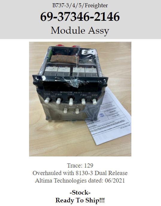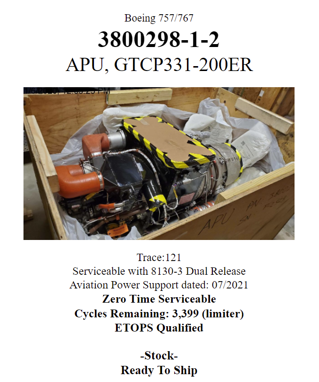 We are an accredited distributor and aircraft parts supplier that maintains an extensive inventory of parts from the industry's top manufacturers including Boeing, Airbus, and Bombardier. Our expertise is focused on landing gears, APUs, interiors, slides/rafts, BFE equipment, and key "no go" spares for A320, B737 Classics, B737 NG, B757, B767, B777 and CRJ 700/900 aircraft.